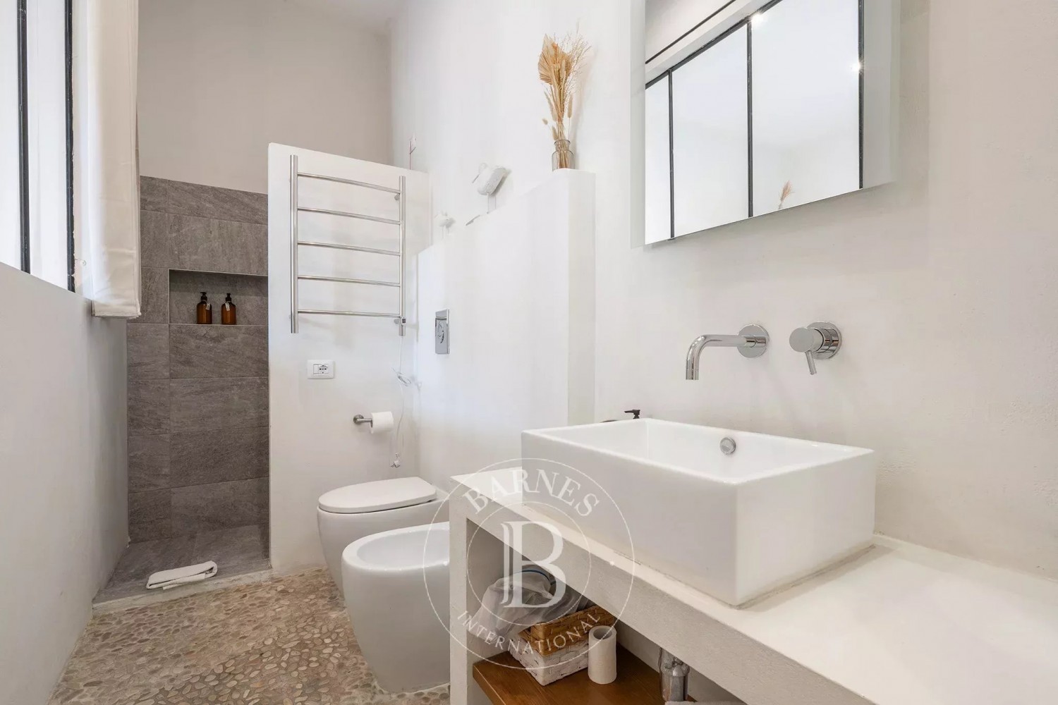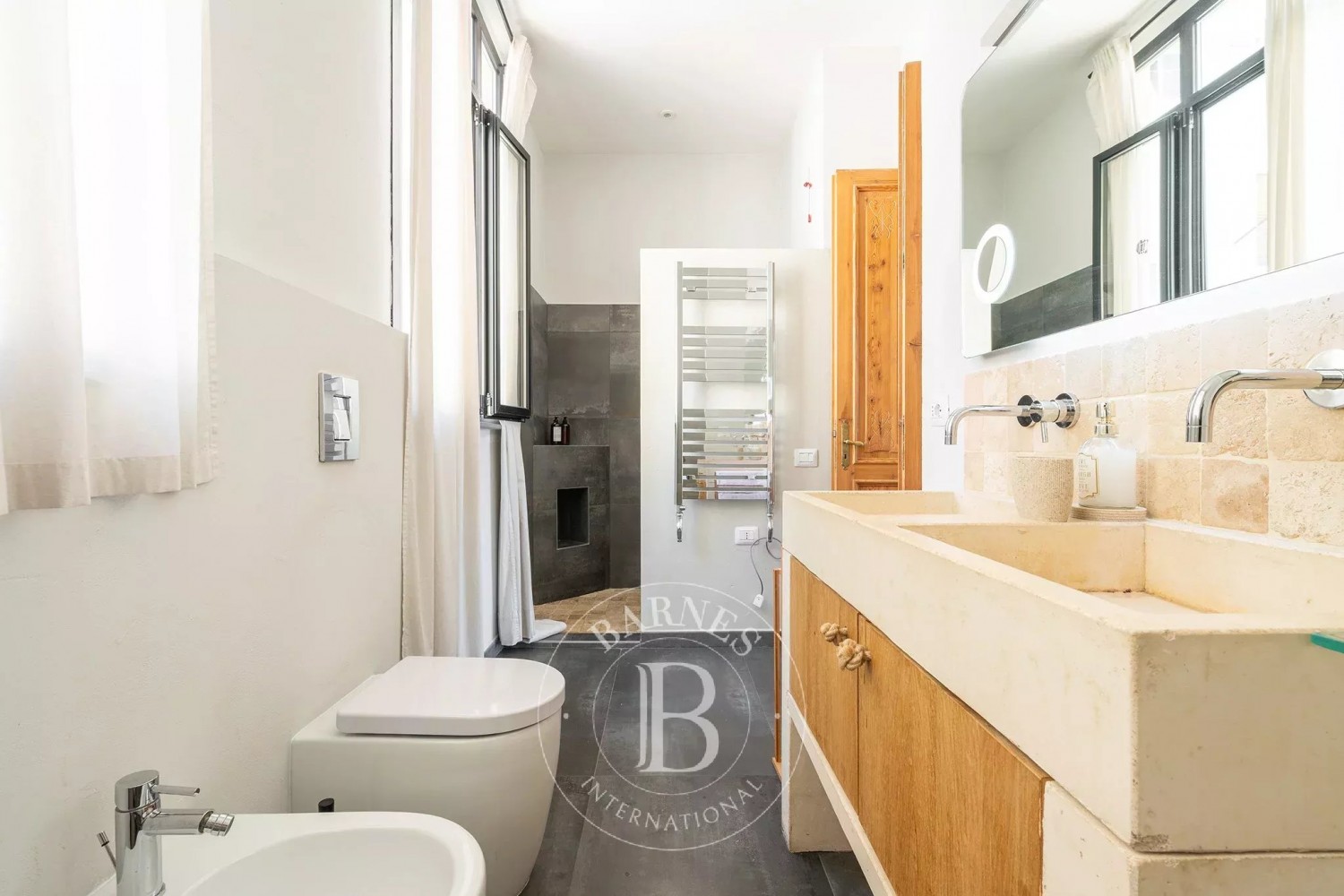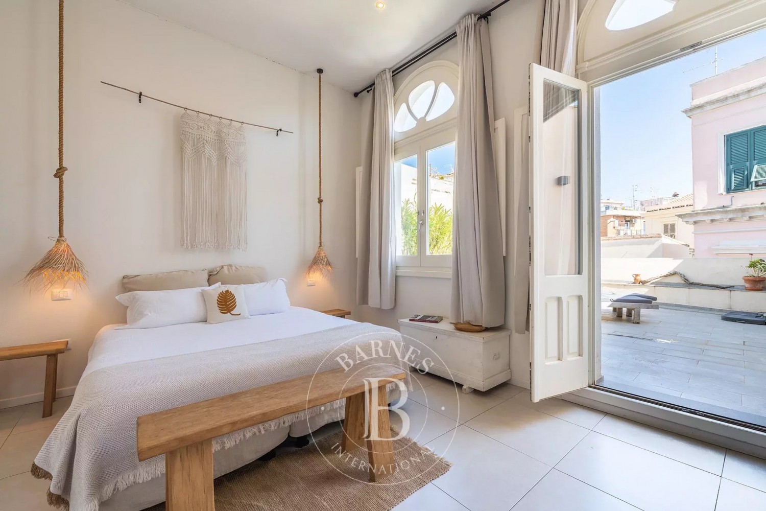 The ground-floor two-bedroom apartment features a private entrance, a bathroom, fully equipped kitchen, and a private interior terrace. The spacious loft offers an open-plan living room and kitchen, a large bathroom, and a terrace on its first level, with a bedroom, second bathroom, and walk-in dressing room upstairs. Two utility rooms on the ground floor of the building provide laundry or storage space, one with direct street access. At the first floor there is an elegant dining area. A staircase leads to a 240 sqm panoramic rooftop terrace, offering breathtaking views of Cagliari and the Bastion of Saint Remy.