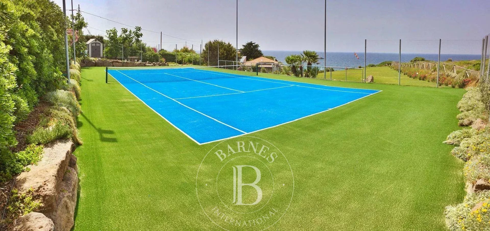 Outdoors, the villa offers a spectacular infinity pool with seawater, seemingly merging with the horizon, a spacious sunbathing area, a heated jacuzzi, and a guest bathroom. Two panoramic verandas—one featuring an outdoor fitness area—enhance the villa’s lifestyle appeal, complemented by a private tennis court and a helipad for effortless arrivals in total discretion.
