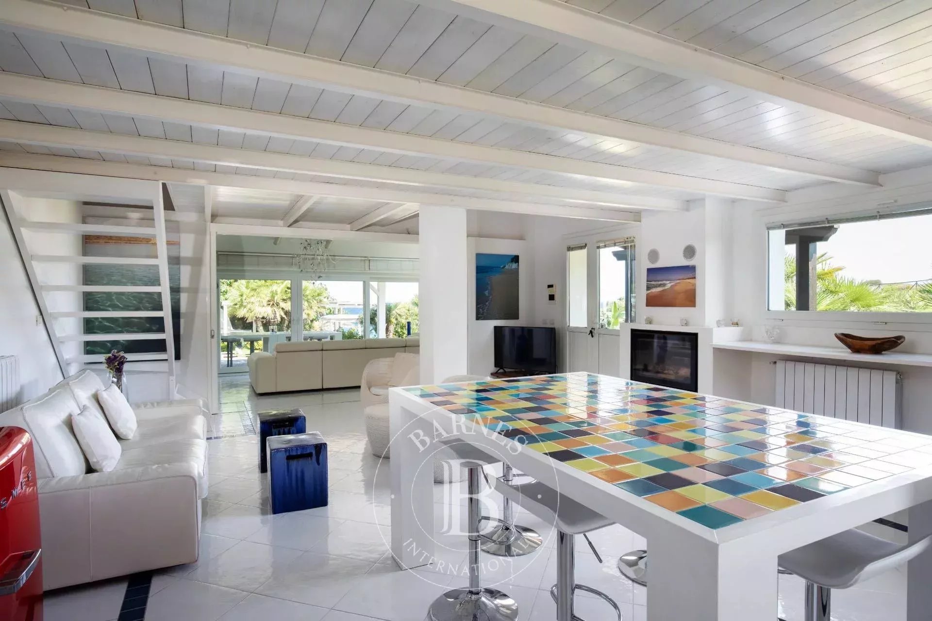 A professional outdoor kitchen and barbecue area make the property perfect for entertaining or hosting elegant dinners by the sea.