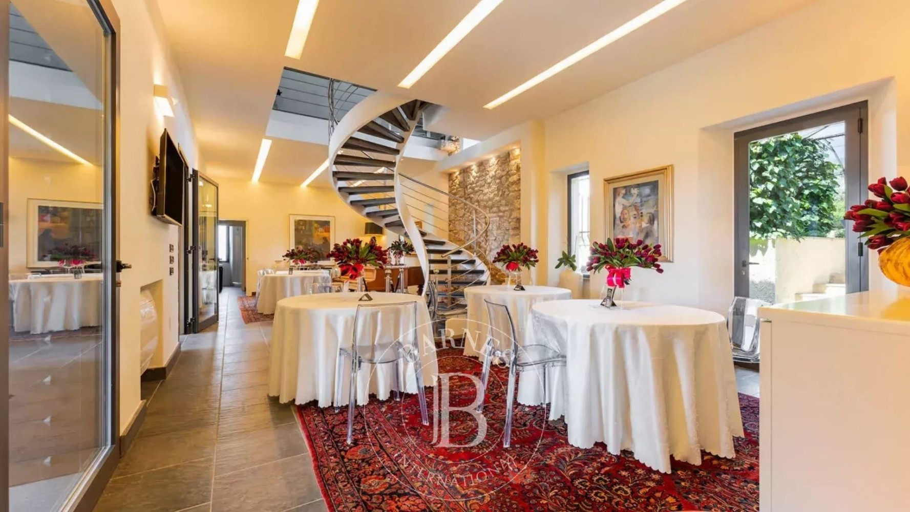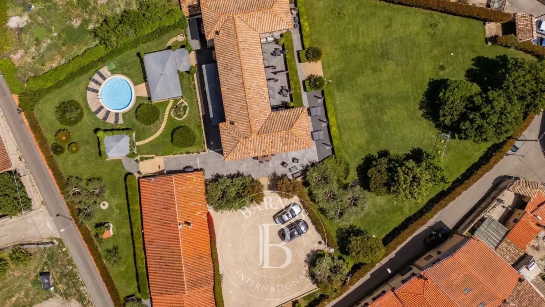 Outdoors, the villa is designed for relaxation and privacy, with a swimming pool, gazebo, and dedicated lounge areas. The guest annex includes staff accommodation, a wellness area, and spaces ideal for hosting events.