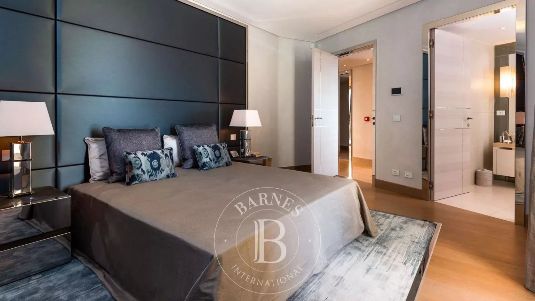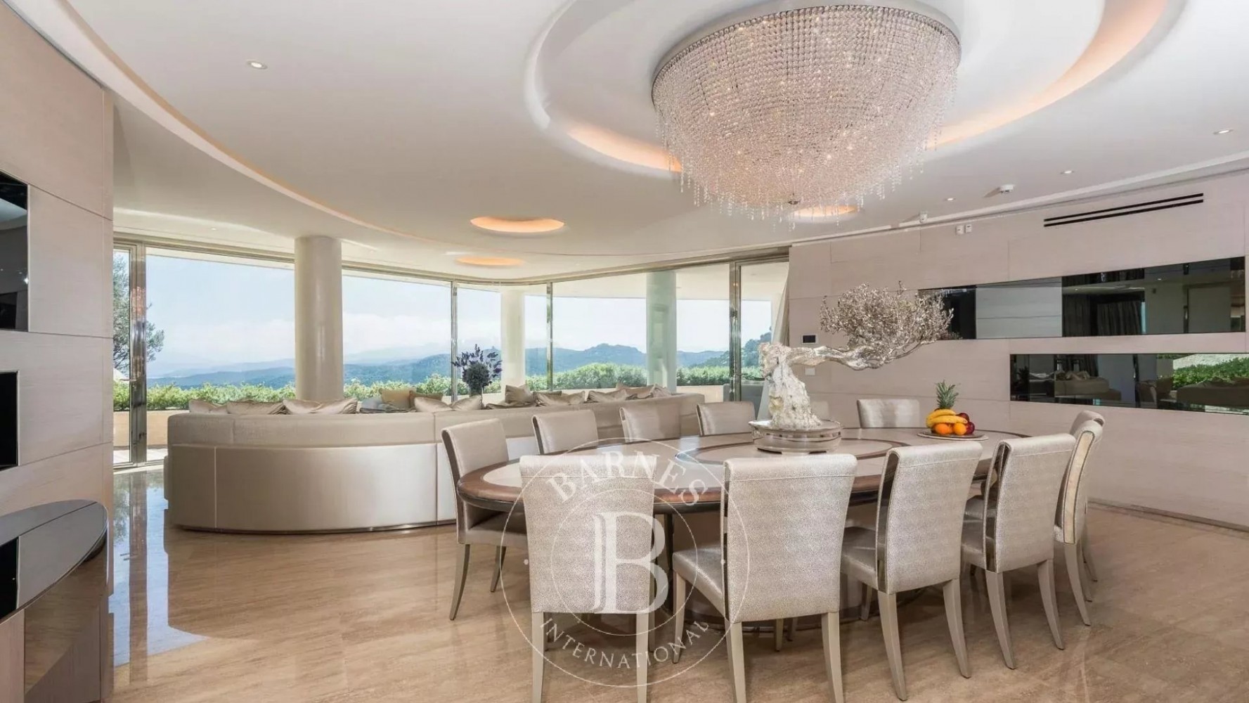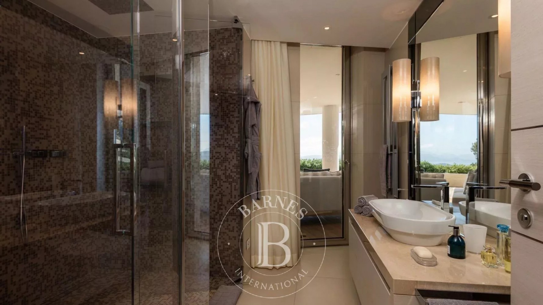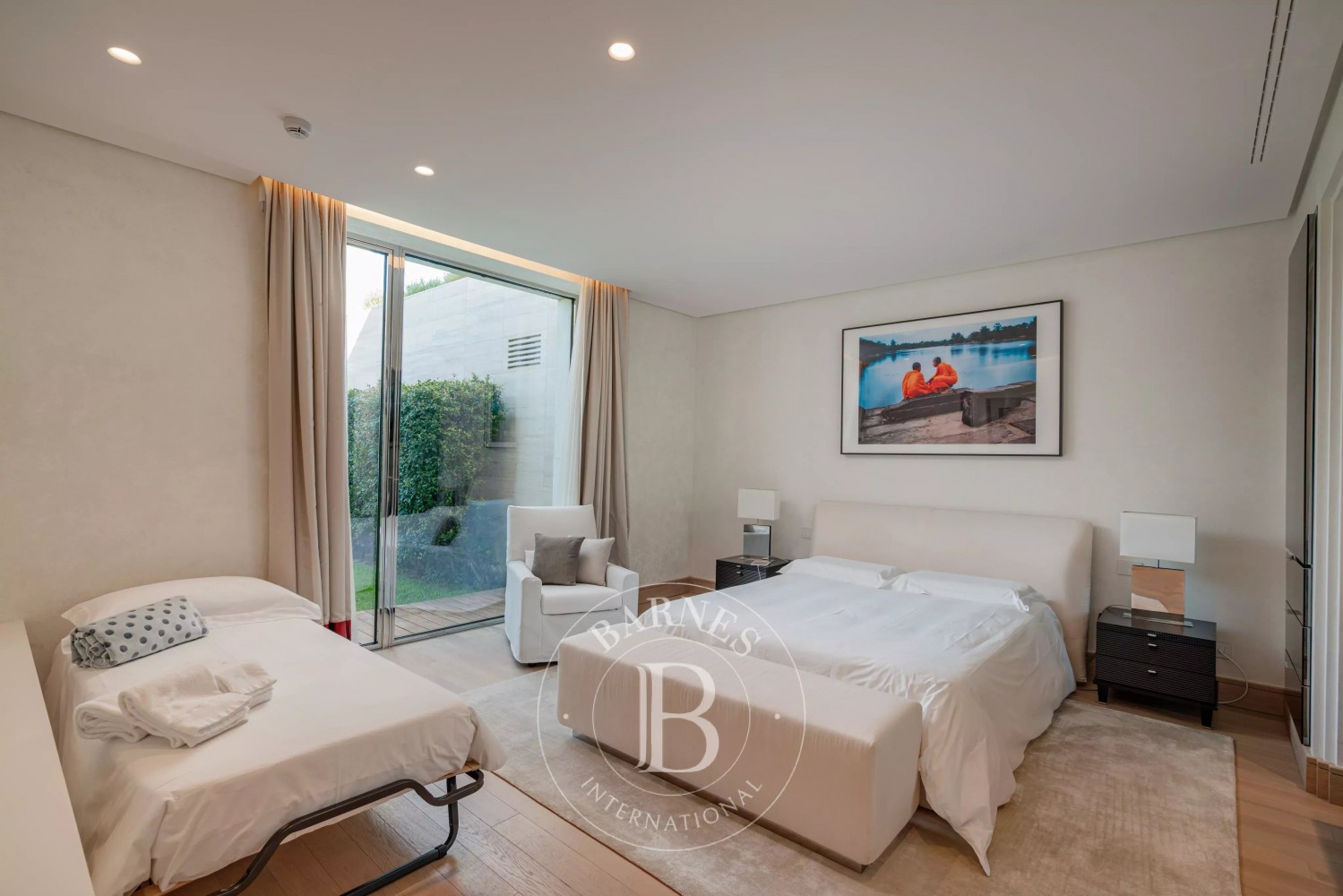 Villa 1 boasts a spacious and luminous living area with a dining space, a sophisticated master suite with a private bathroom and direct terrace access, three elegant en-suite bedrooms on the lower level, and two independent staff bedrooms, each with a private bathroom. Villa 2 offers three additional en-suite guest bedrooms, ensuring the utmost privacy and comfort for every resident.