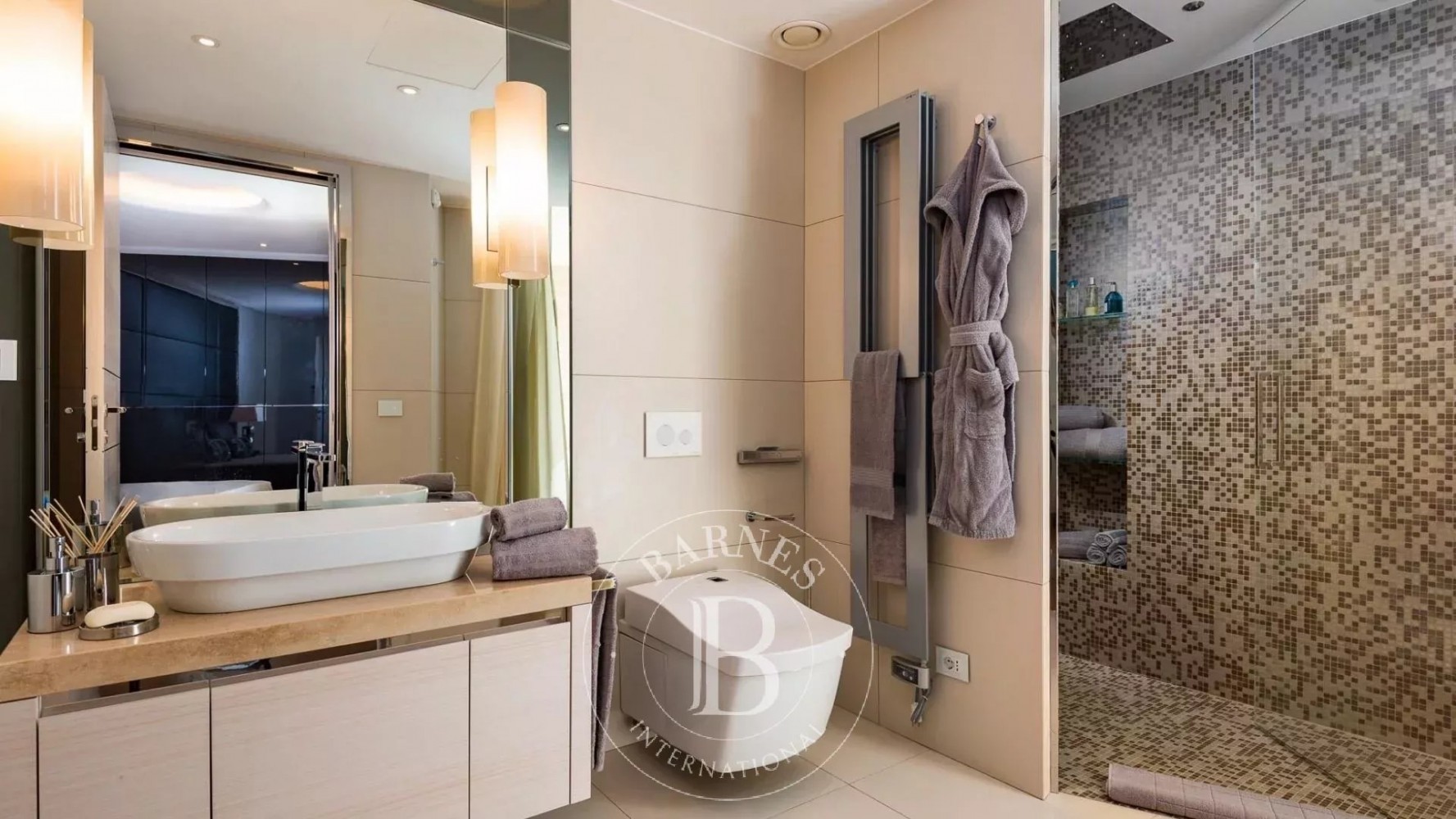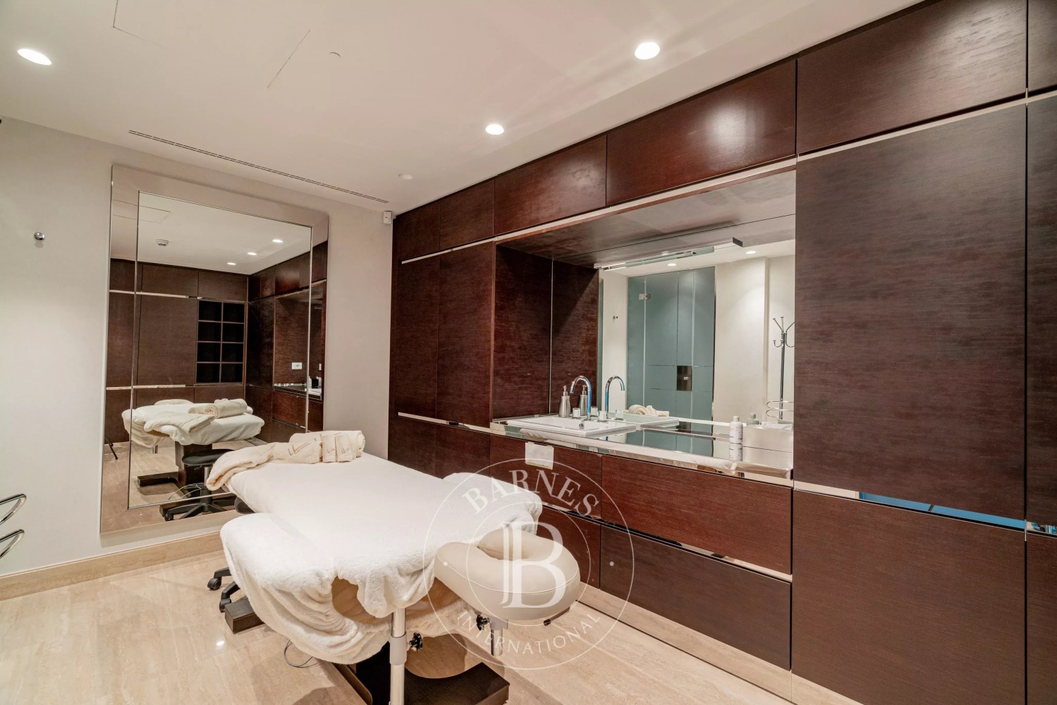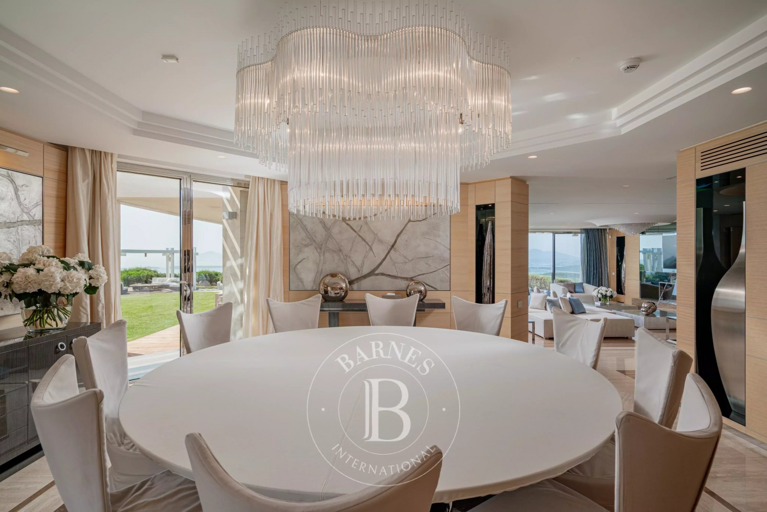 Villa 1 boasts a spacious and luminous living area with a dining space, a sophisticated master suite with a private bathroom and direct terrace access, three elegant en-suite bedrooms on the lower level, and two independent staff bedrooms, each with a private bathroom. Villa 2 offers three additional en-suite guest bedrooms, ensuring the utmost privacy and comfort for every resident.