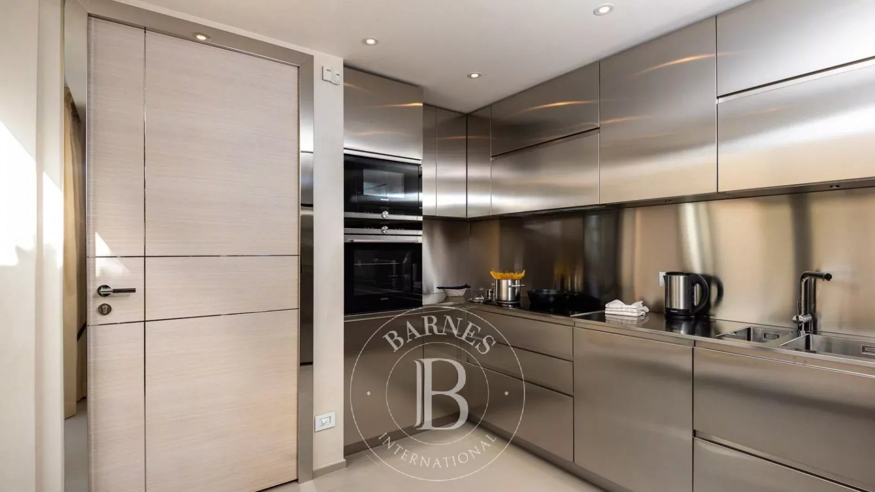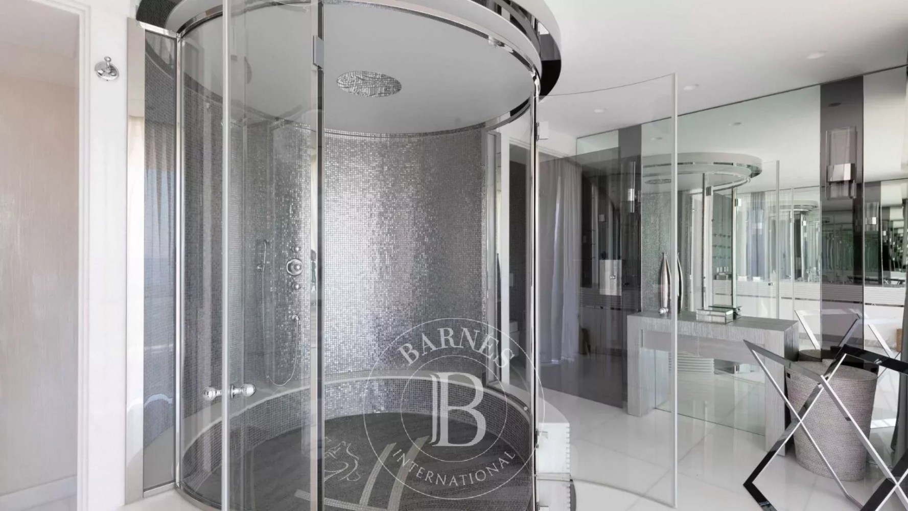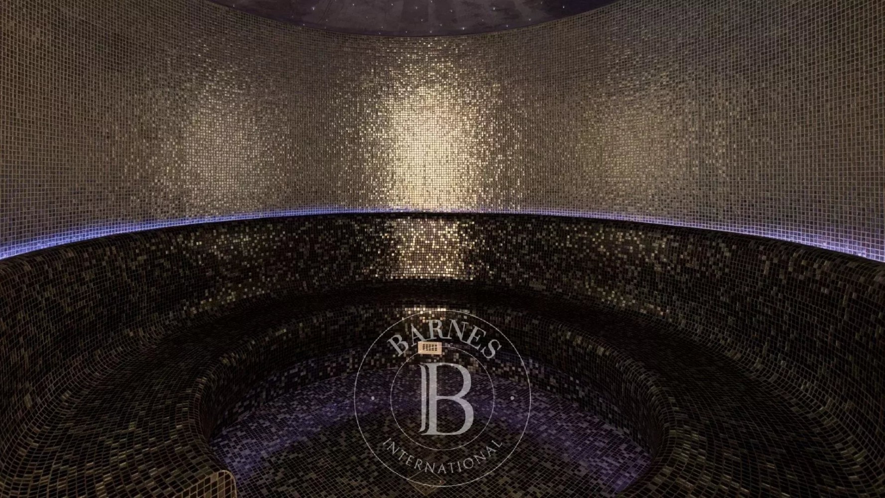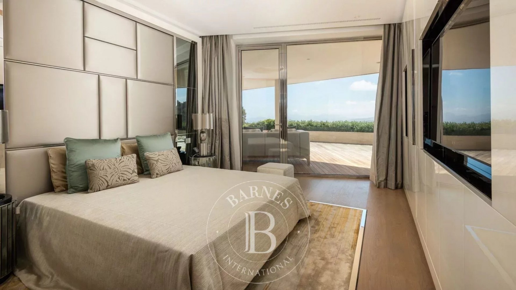 Villa 1 boasts a spacious and luminous living area with a dining space, a sophisticated master suite with a private bathroom and direct terrace access, three elegant en-suite bedrooms on the lower level, and two independent staff bedrooms, each with a private bathroom. Villa 2 offers three additional en-suite guest bedrooms, ensuring the utmost privacy and comfort for every resident.