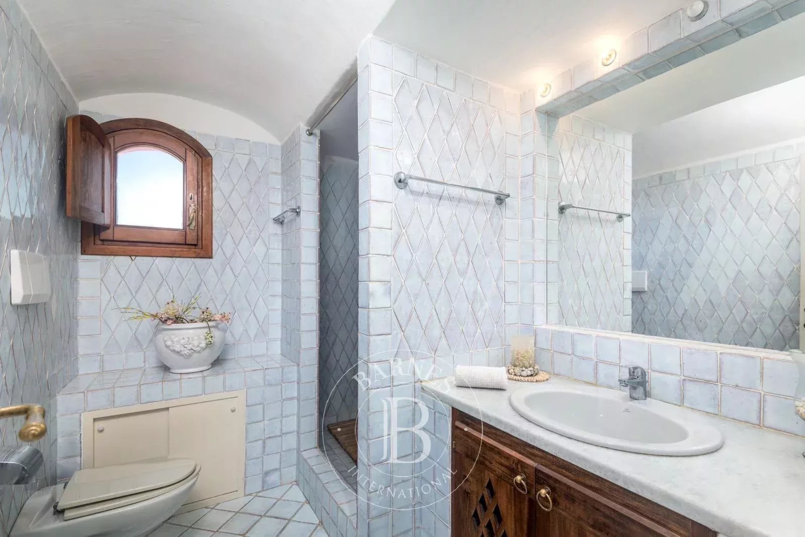 The interiors include a fully equipped kitchen, three elegant bedrooms, and three bathrooms, designed with both style and practicality in mind. The property is further enriched by an elegant communal swimming pool and a private parking space, while a separate guest or staff room with private bathroom adds an additional touch of comfort and versatility. An exceptional opportunity to acquire a sophisticated residence in one of the most prestigious locations of Costa Smeralda, where refined living meets unparalleled views.