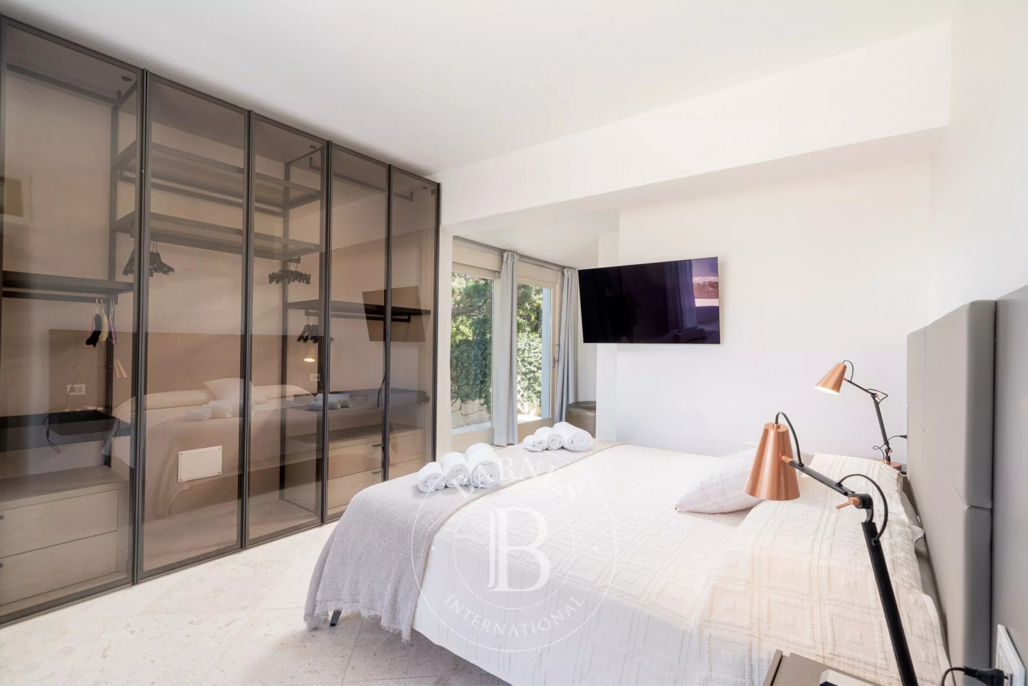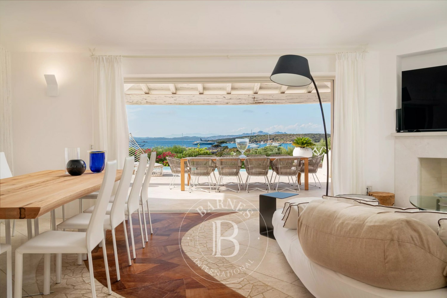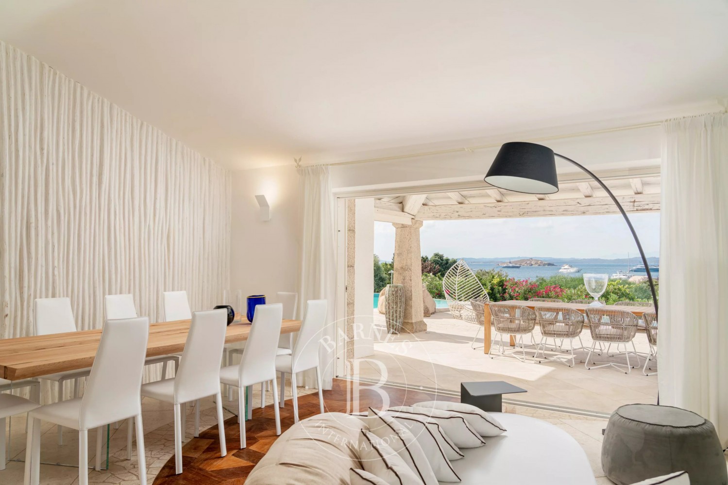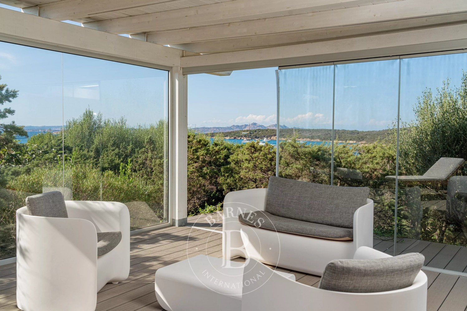 Inside, the villa is characterized by a fresh and refined style. Outside, the large garden surrounds the beautiful property, with a magnificent irregularly shaped pool offering breathtaking views of the coast. Additionally, the villa has a vegetable garden to have fresh vegetables on the table, a small outdoor gym, and a private dock.