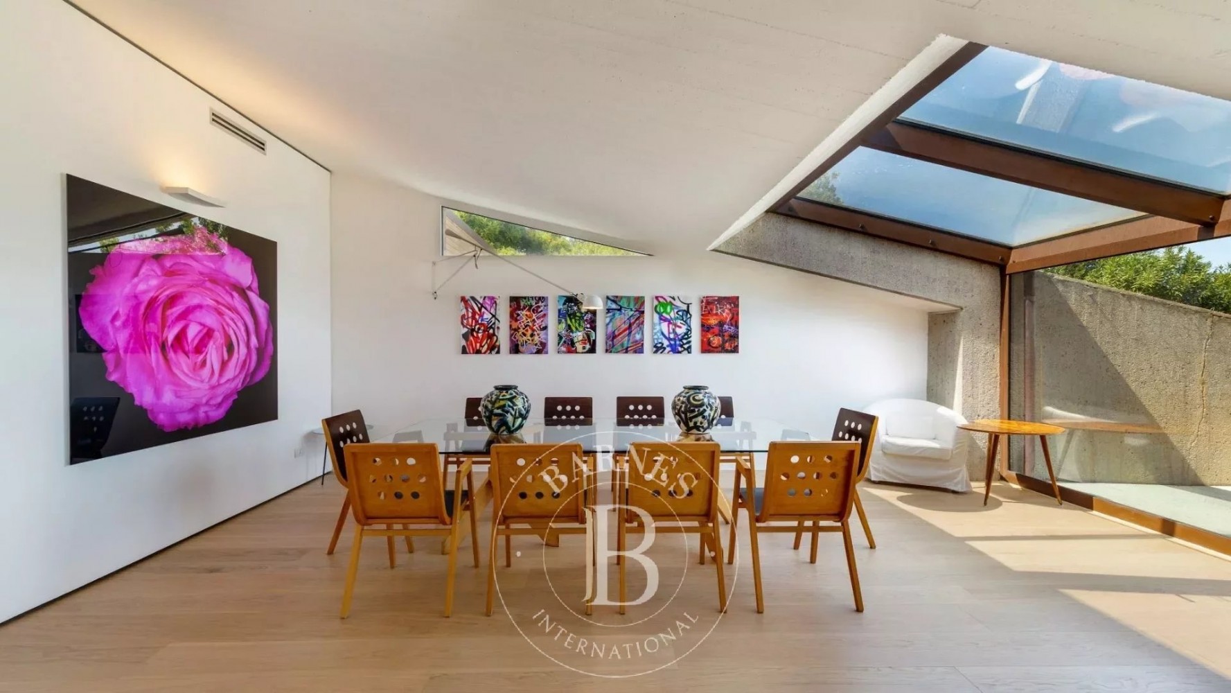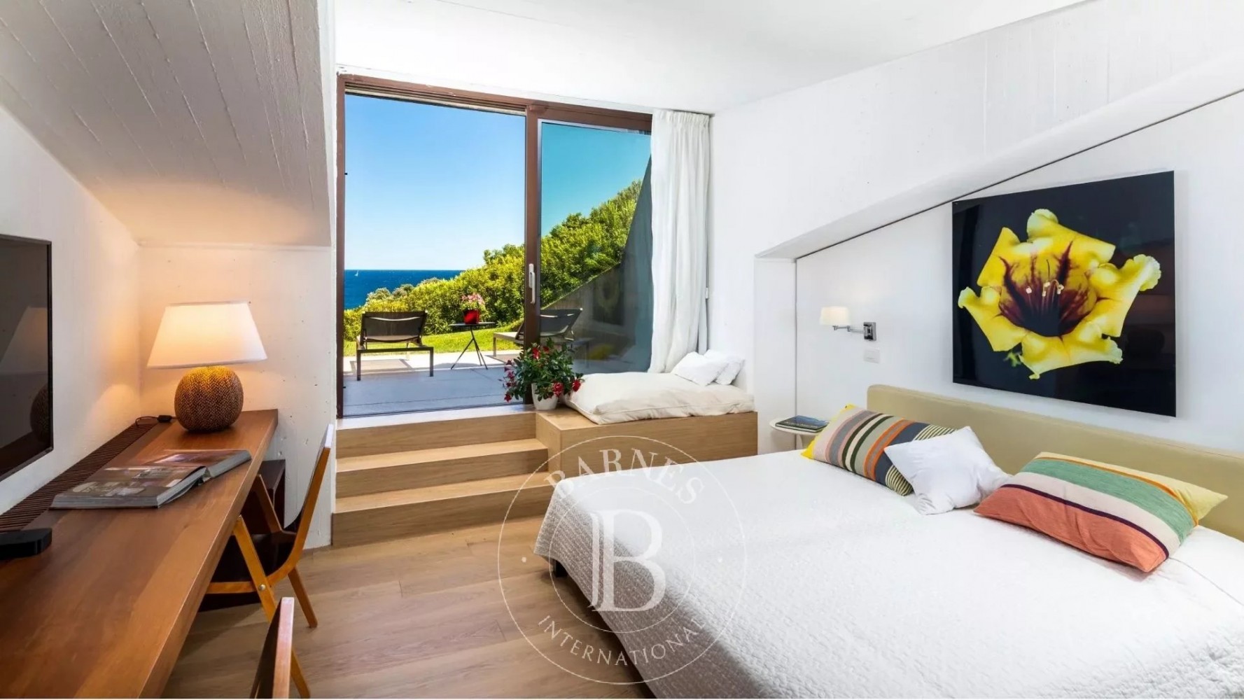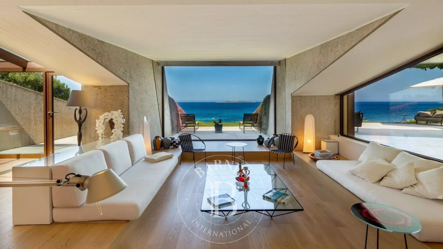 The villa has a fantastic 270 degree view of the Mediterranean and a 20 meter heated swimming pool filled with sea water and the possibility of mooring on the private dock of the villa.