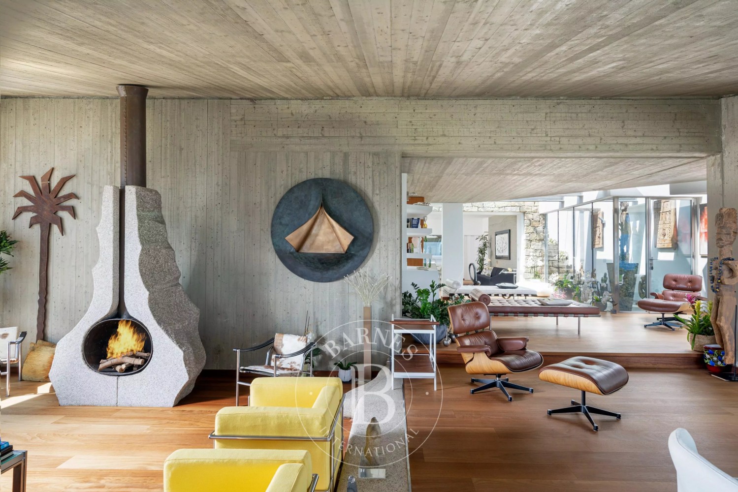 Featuring a modern style, the villa's unique and unmistakable architecture was created by the famous Italian architect Ferdinando Fagnola. The house extends over two floors, with a large 200 sqm living room offering panoramic views of the outside and a designer fireplace.