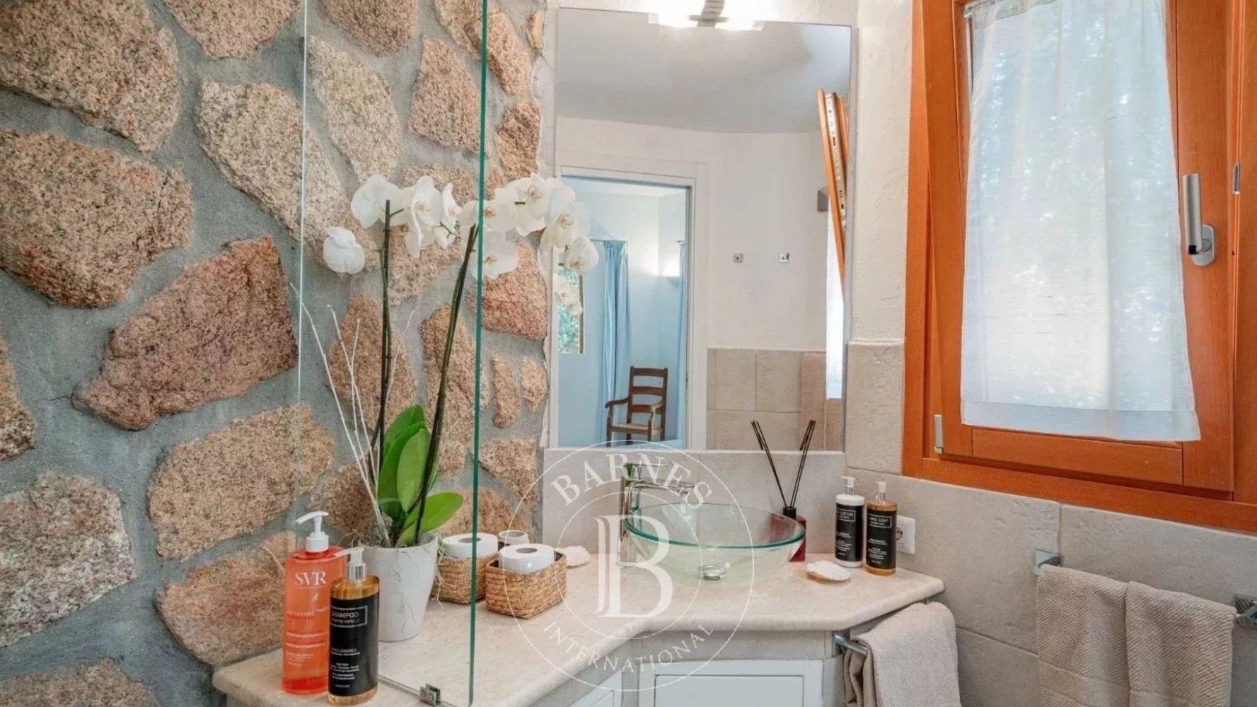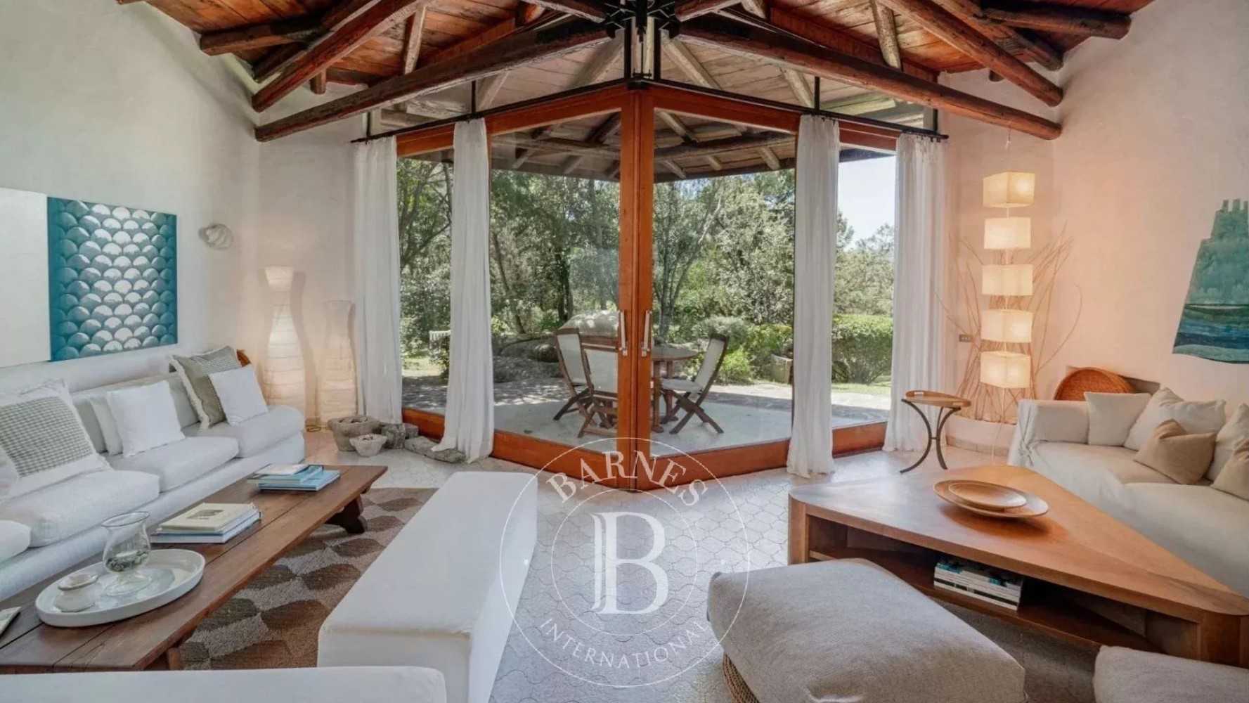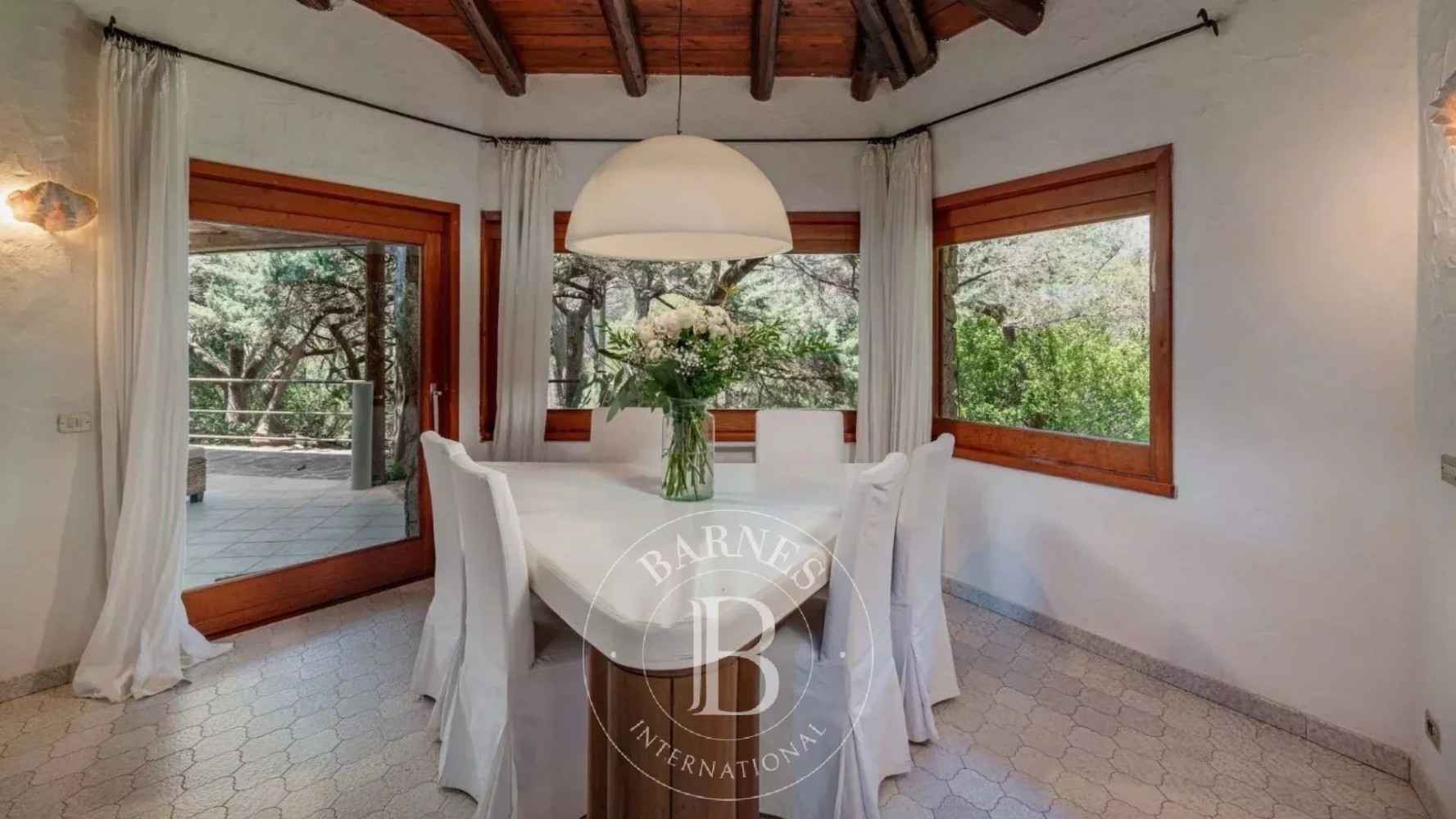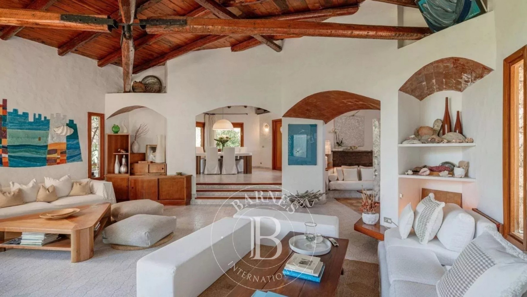 This magnificent seafront property is an absolute must-see! Located in the exclusive area of Cala di Volpe in Porto Cervo, on the stunning Costa Smeralda, this villa is surrounded by a lush park of 5734 square meters, offering the utmost privacy and tranquility. Thanks to its privileged position, this property has direct access to the beach and boasts breathtaking sea views. The villa itself is an elegant and spacious living space of 358 square meters, featuring a rich blend of wood, stone, and neutral colors that create a warm and welcoming atmosphere. The villa consists of a large living room and a wooden kitchen, two double bedrooms, each with its own bathroom, two double bedrooms with shared bathroom, a single bedroom with private bathroom and another double bedroom with a bathroom downstairs.