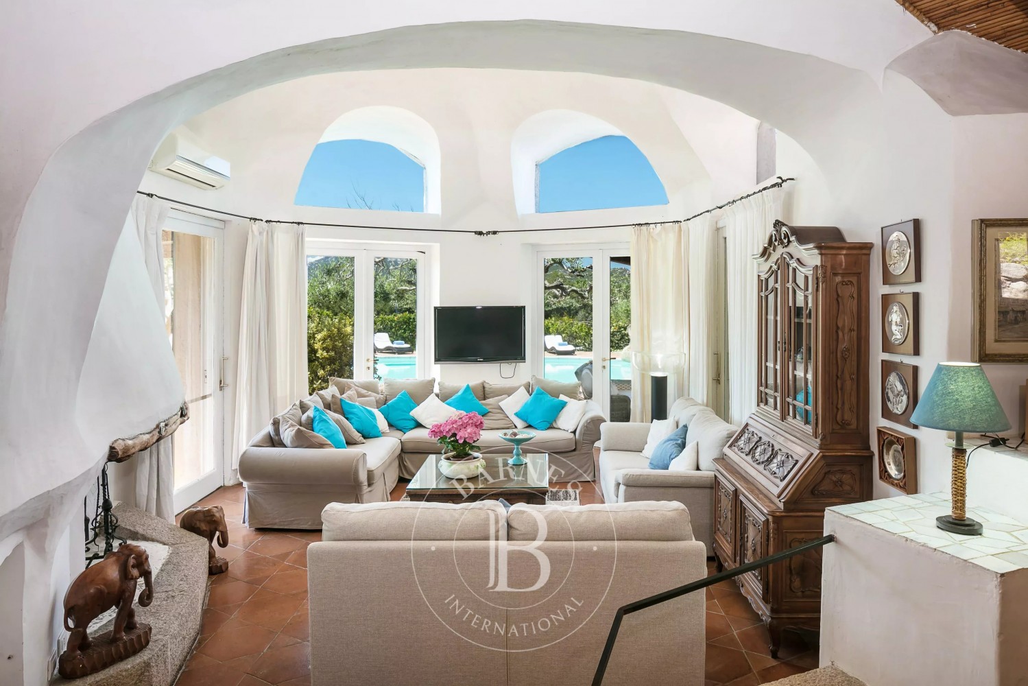 Situated only 50 meters from the beautiful La Celvia beach, the villa is surrounded by a Mediterranean garden with tall trees and large outdoor spaces. An outdoor gazebo houses a barbecue area, perfect for alfresco dining.