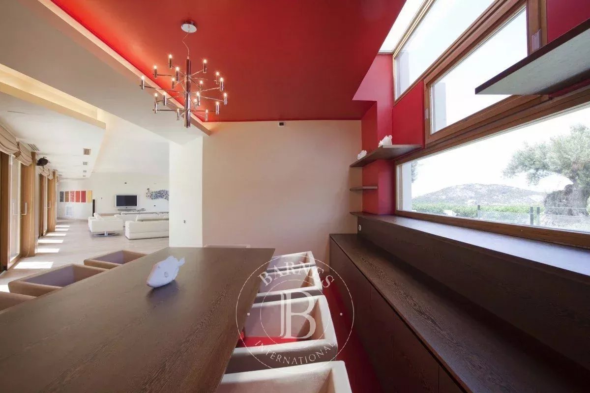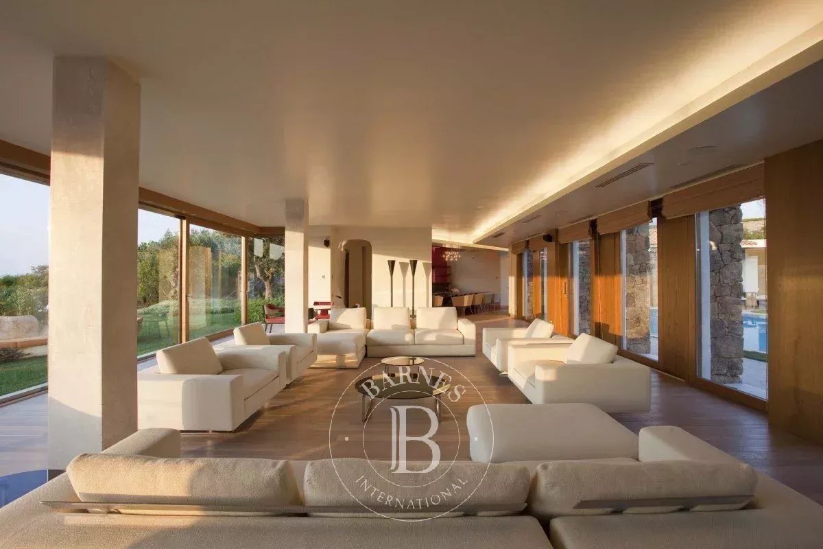 This exclusive villa boasts 9 bedrooms and is set on a large plot of land, with a living area that provides ample space for guests. Located in Porto Cervo, in an unparalleled position among granite rock sculptures and just above the famous Hotel Pitrizza, the villa is very close to the Cala di Volpe area. The distance from the sea is minimal, and the property features an extra-large pool that, along with the large windows, creates a seamless indoor-outdoor effect. The villa has been designed with a contemporary style by the architect who skillfully combined tradition and comfort, enhancing the granite rocks and Mediterranean garden with cutting-edge technology.