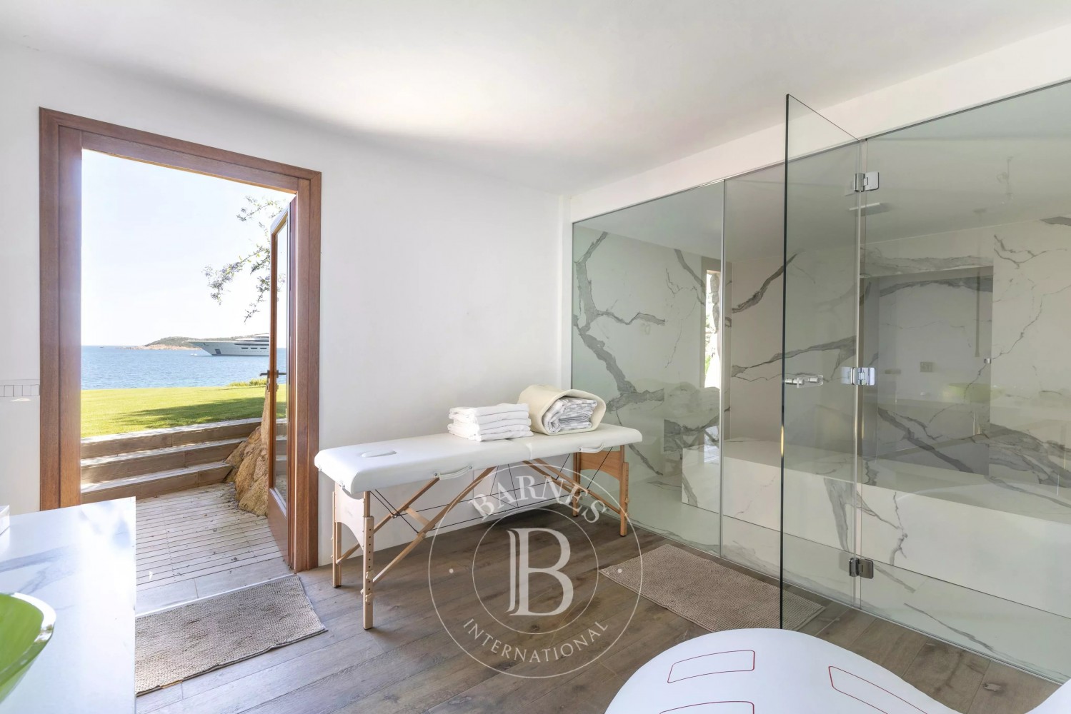 Located in an exclusive area and in a privileged position directly on the beach, the villa is just a few steps from the crystal-clear sea and boasts a refreshing swimming pool. Its style perfectly reflects that of the Costa Smeralda, with high-quality finishes, including granite, stone, wood, and marble.