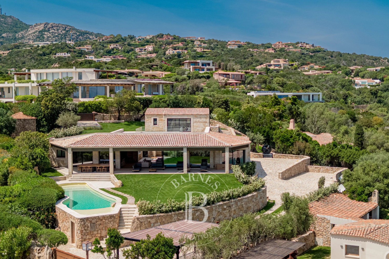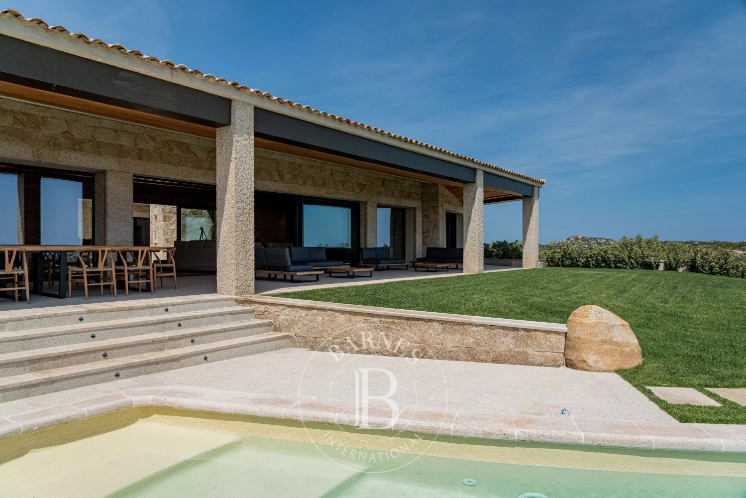 In the heart of the fascinating Pevero Area in Porto Cervo, stands a modern villa, whose beauty lies in the harmonious fusion of contemporary architecture and generous use of wood. This noble material contributes to creating a warm and welcoming environment, a luxurious retreat immersed in the tranquility of Sardinia.