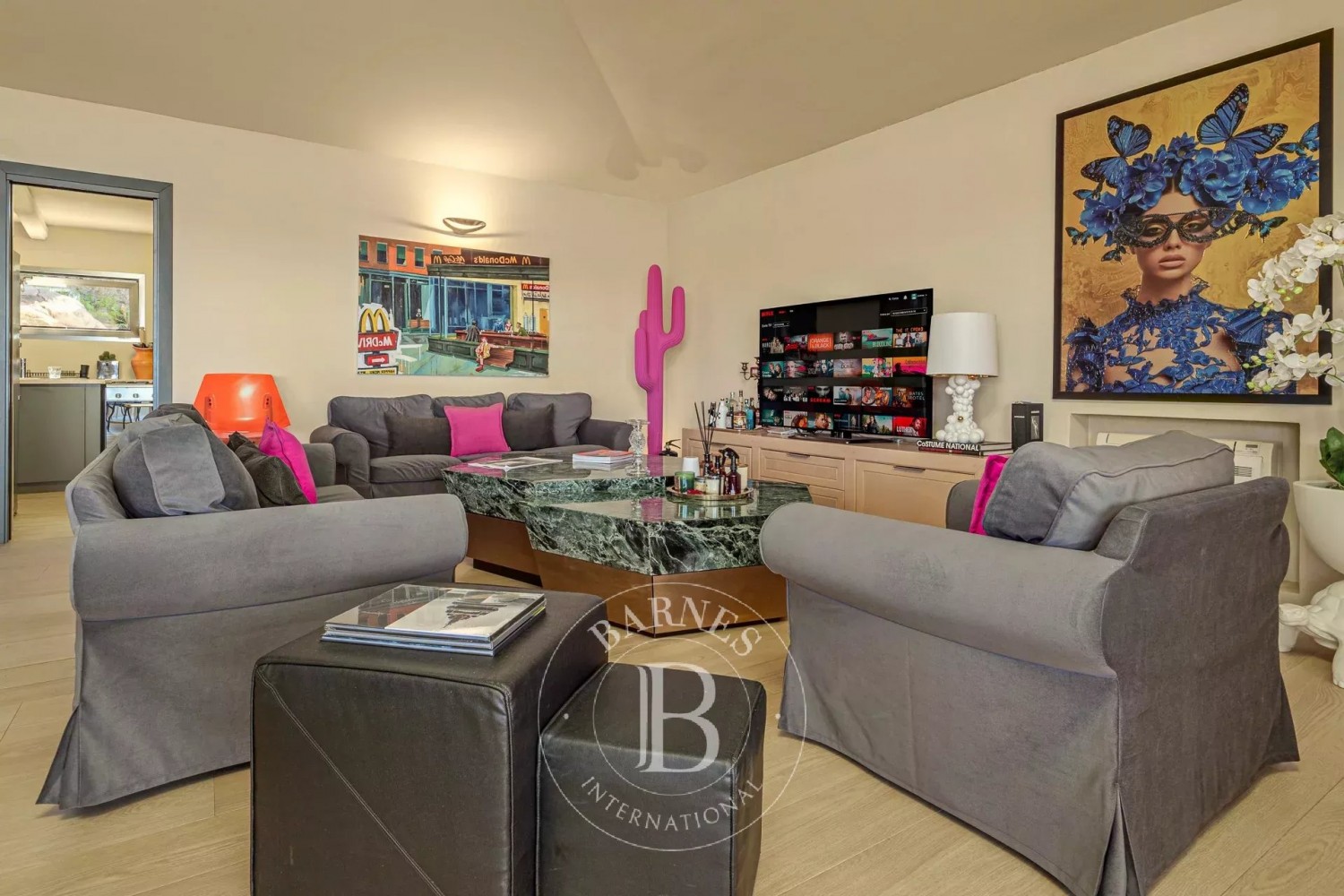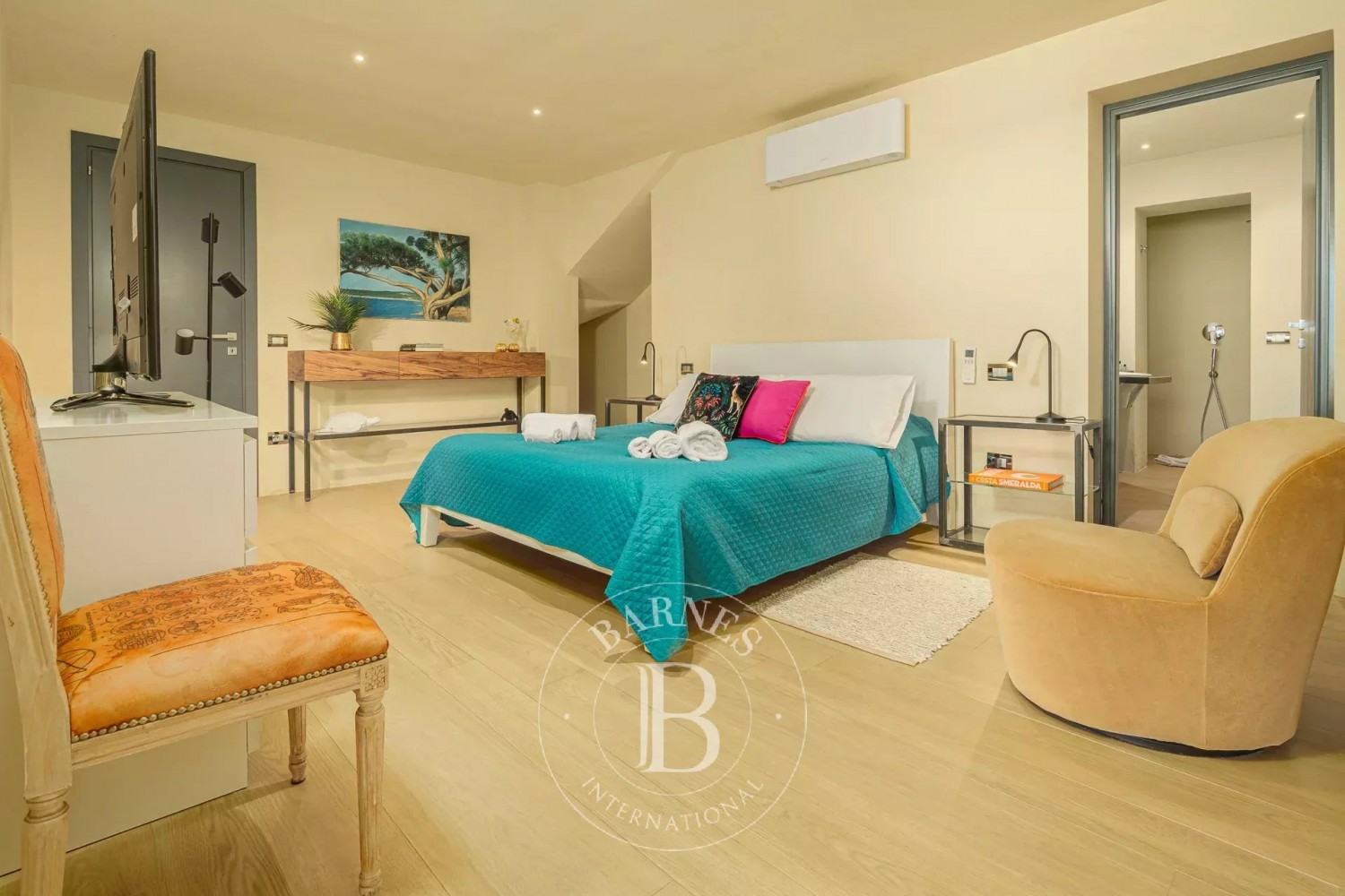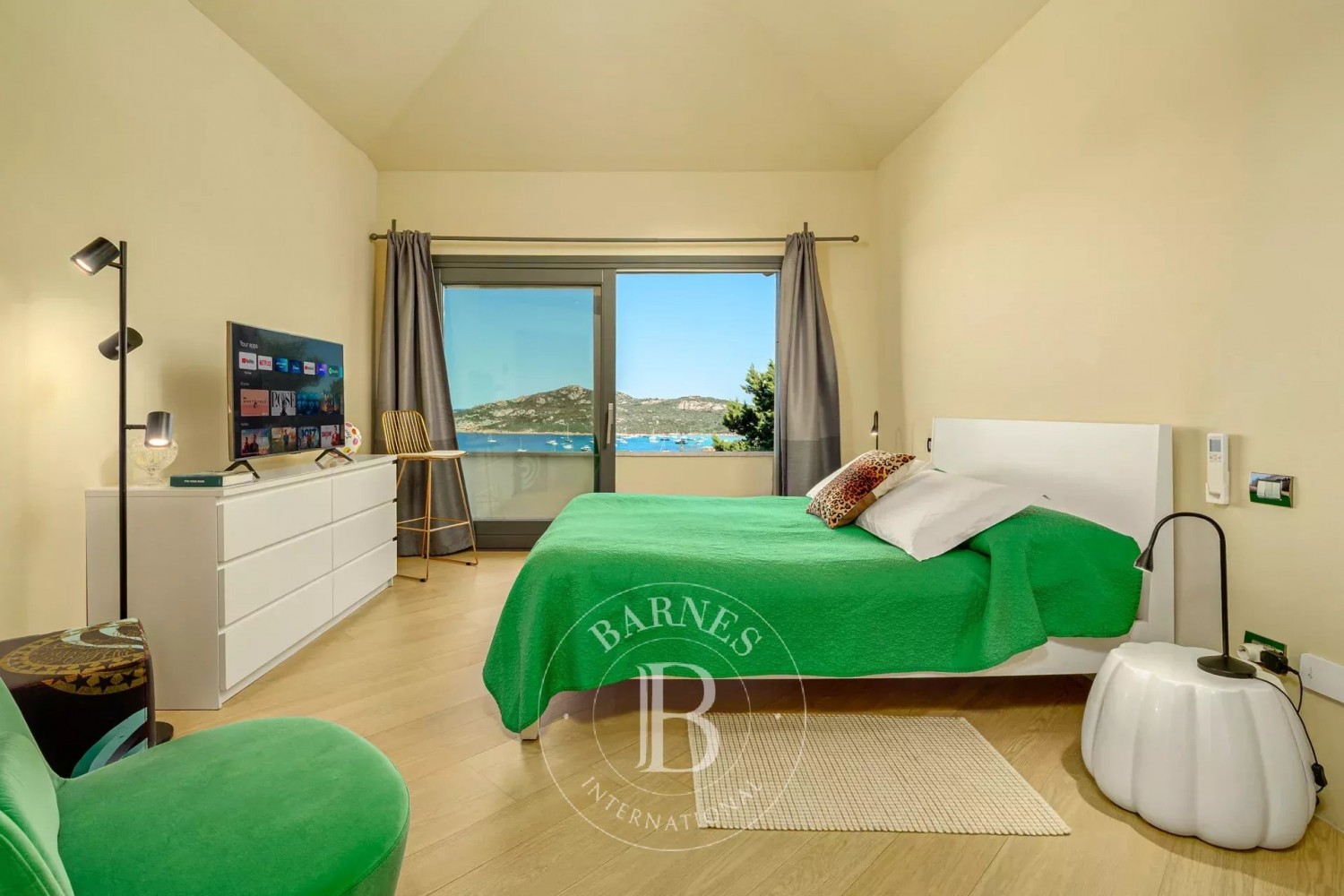Ideally situated just minutes by car from the center of Porto Cervo, guests can easily access luxury shopping, a world-class marina, and some of the most beautiful beaches on the Costa Smeralda. With four private parking spaces, this residence is both luxurious and convenient.