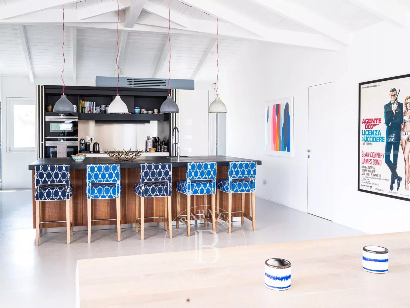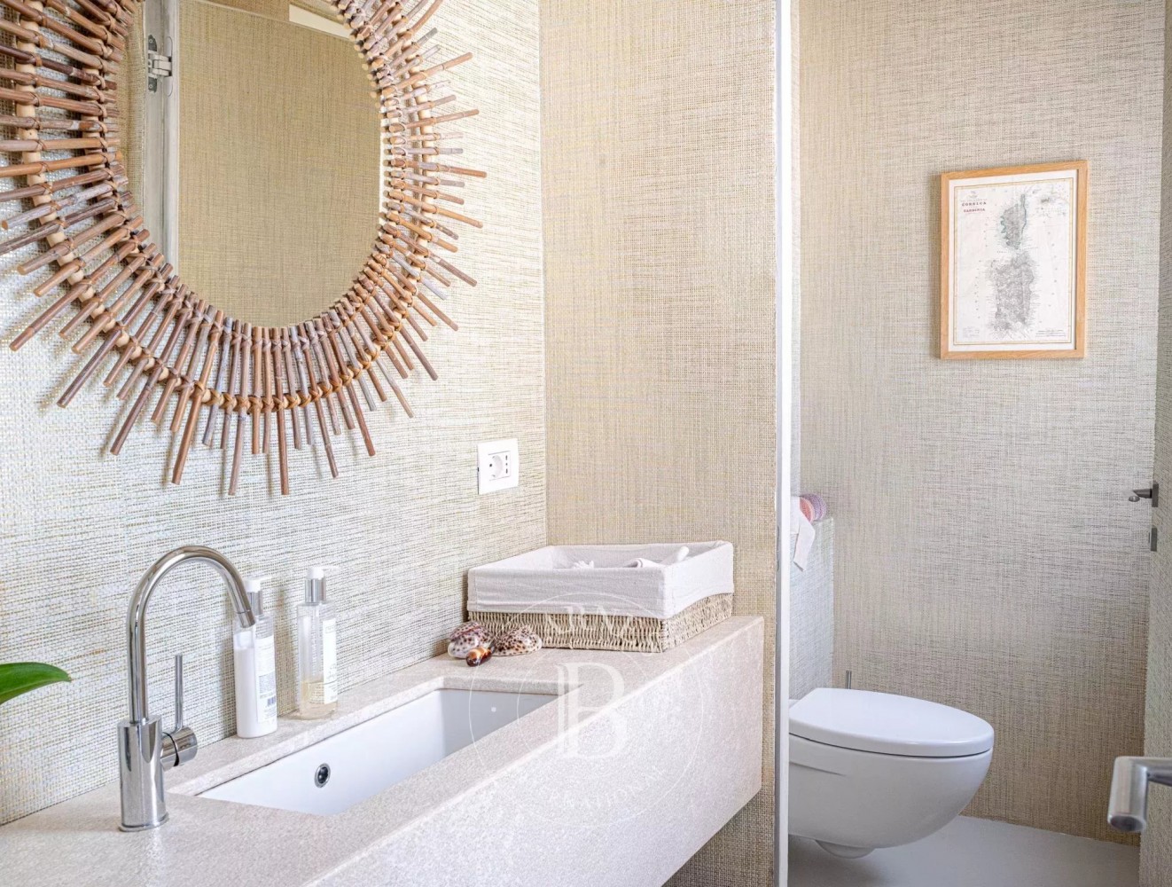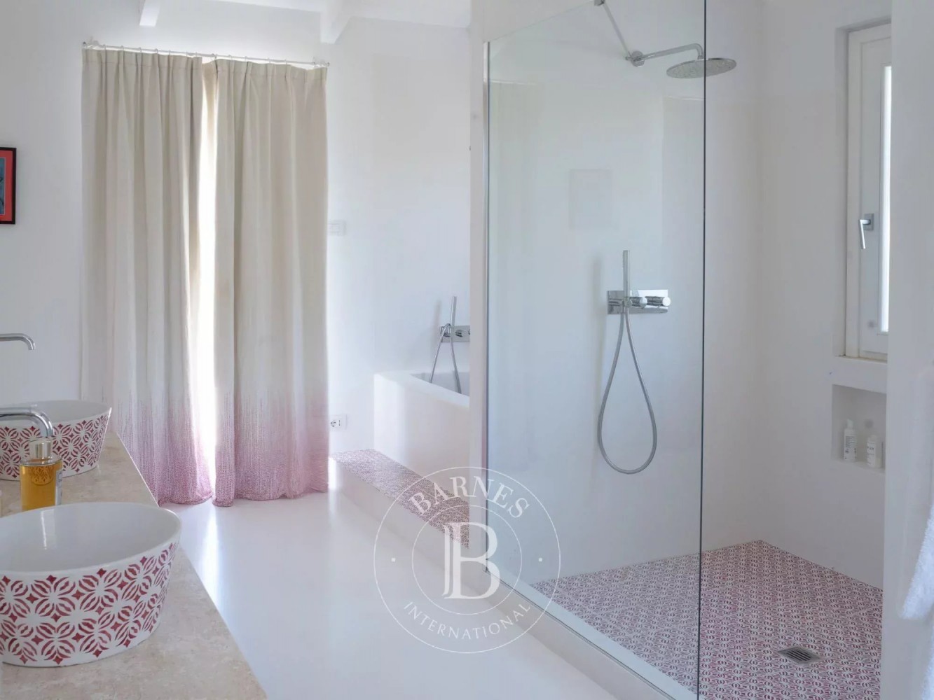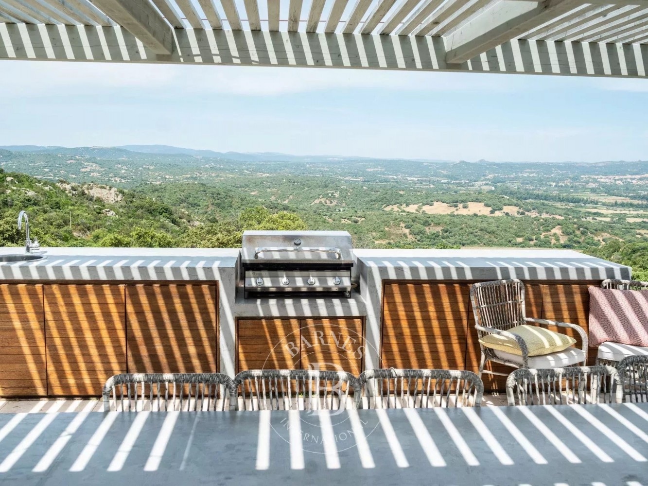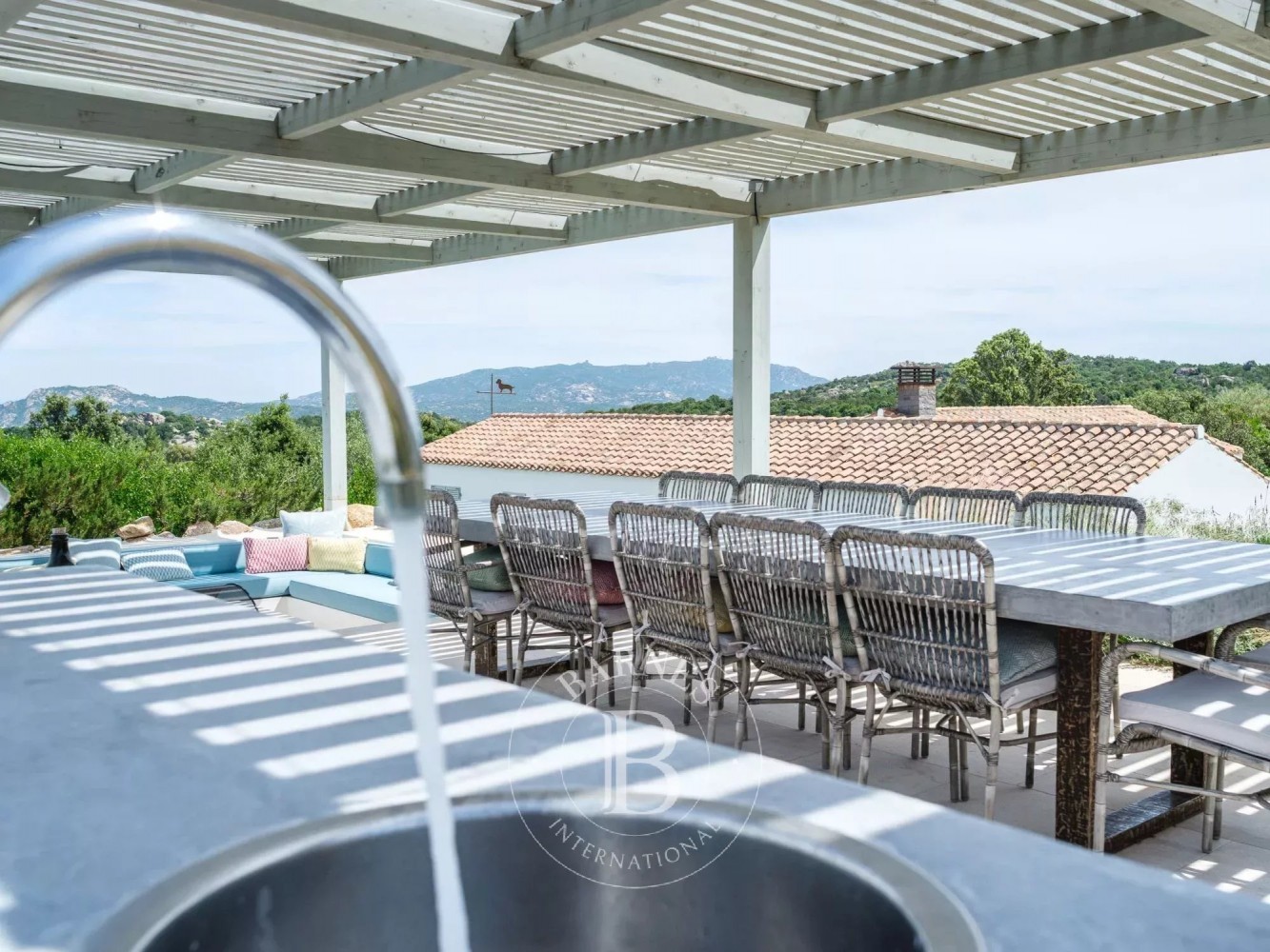 Welcome to an exceptional, modern villa Bénie nestled atop a picturesque hill in the exclusive San Pantaleo district on Sardinia's mesmerizing northeast coast. This brand new property captivates with its stunning sea views, offering the perfect balance between luxury and tranquility. The villa comfortably accommodates 14 people, with a total of 6 bedrooms and 4 bathrooms, plus a guest room with bathroom. The property spans across a 60702 sqm plot of land and the 200sqm structure is carefully designed, providing a refreshing atmosphere with its lively and colorful interior, completed with high-quality furnishings.