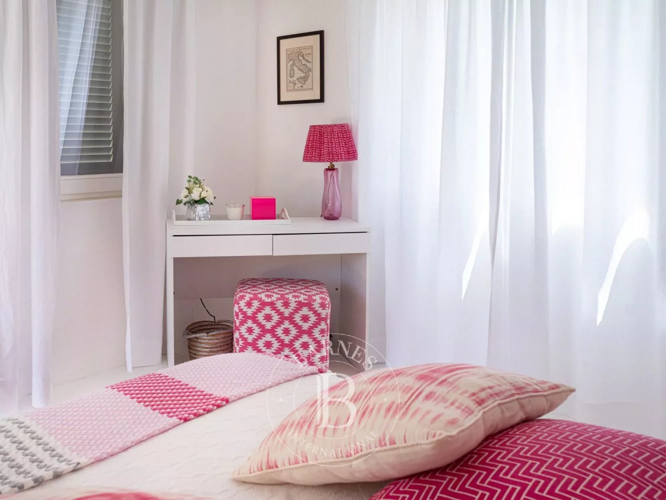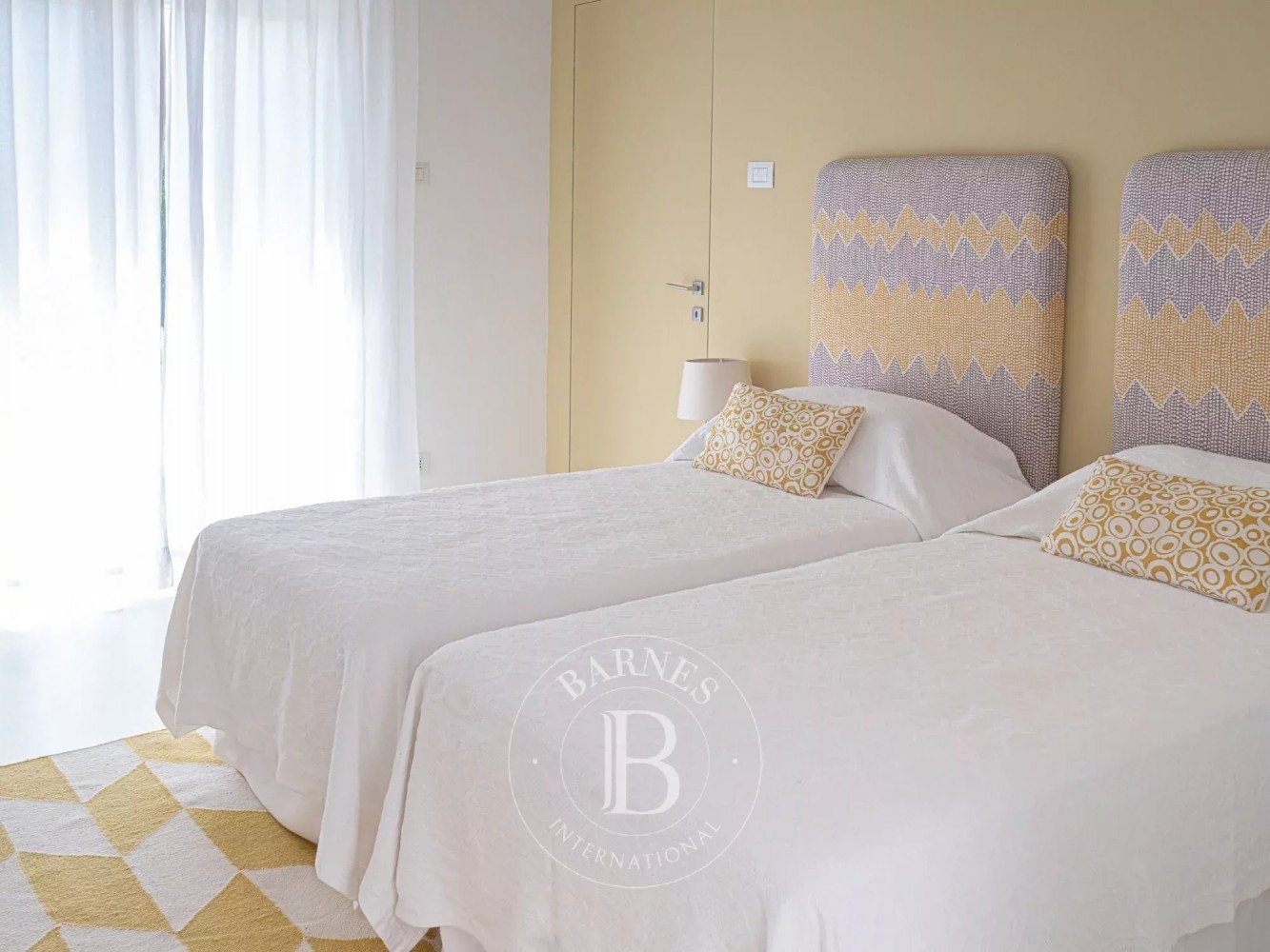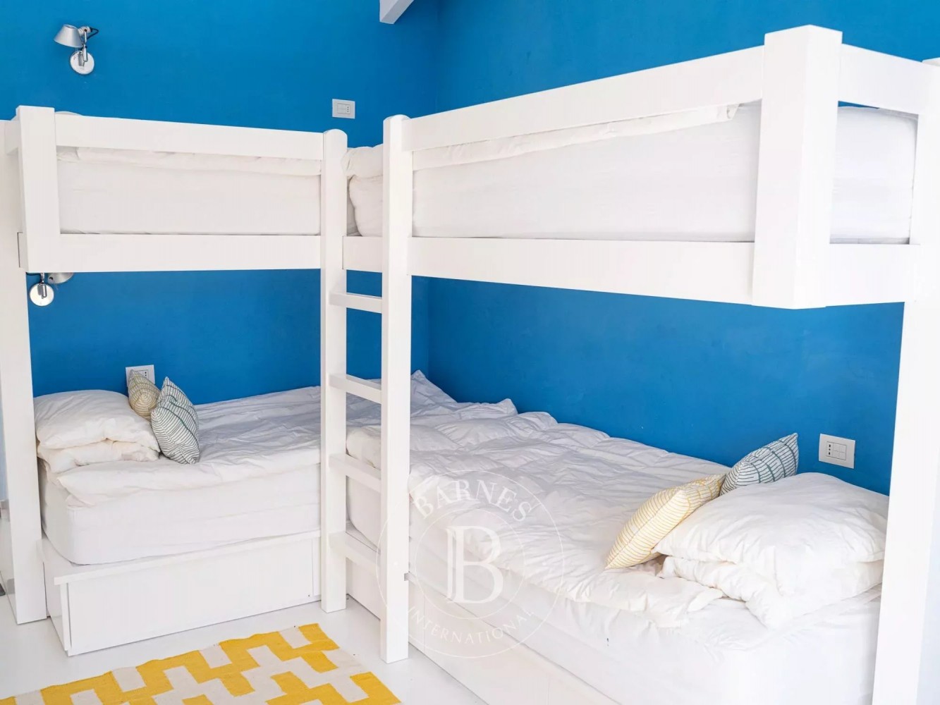Inside, the villa boasts an impressive master suite with an ensuite bathroom, a double room and a twin room sharing a bathroom, a cozy four-bed bunk room, and a further double room with a shared shower room. An additional single room with a shower is conveniently located off the kitchen, providing ideal accommodation for staff. The villa boasts a dependance with bedroom and bathroom.
