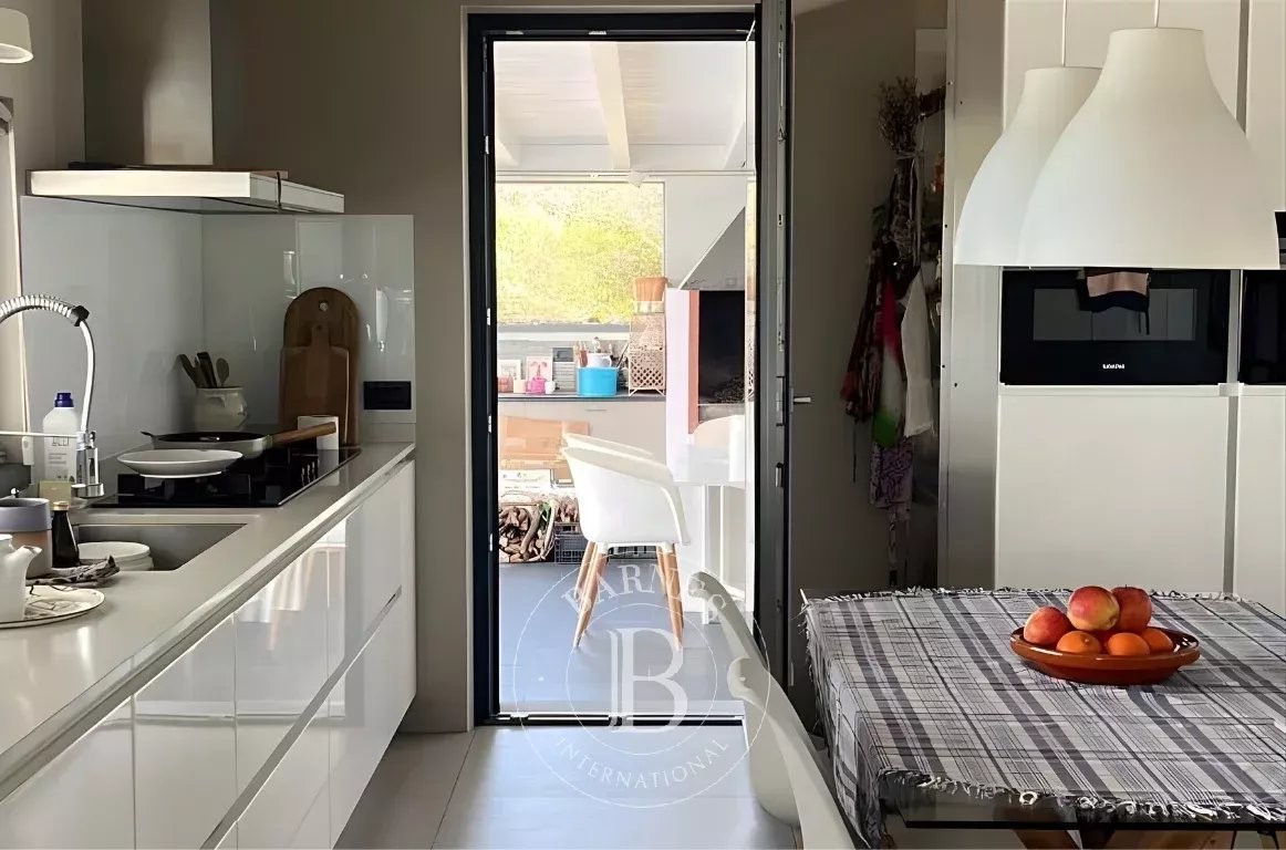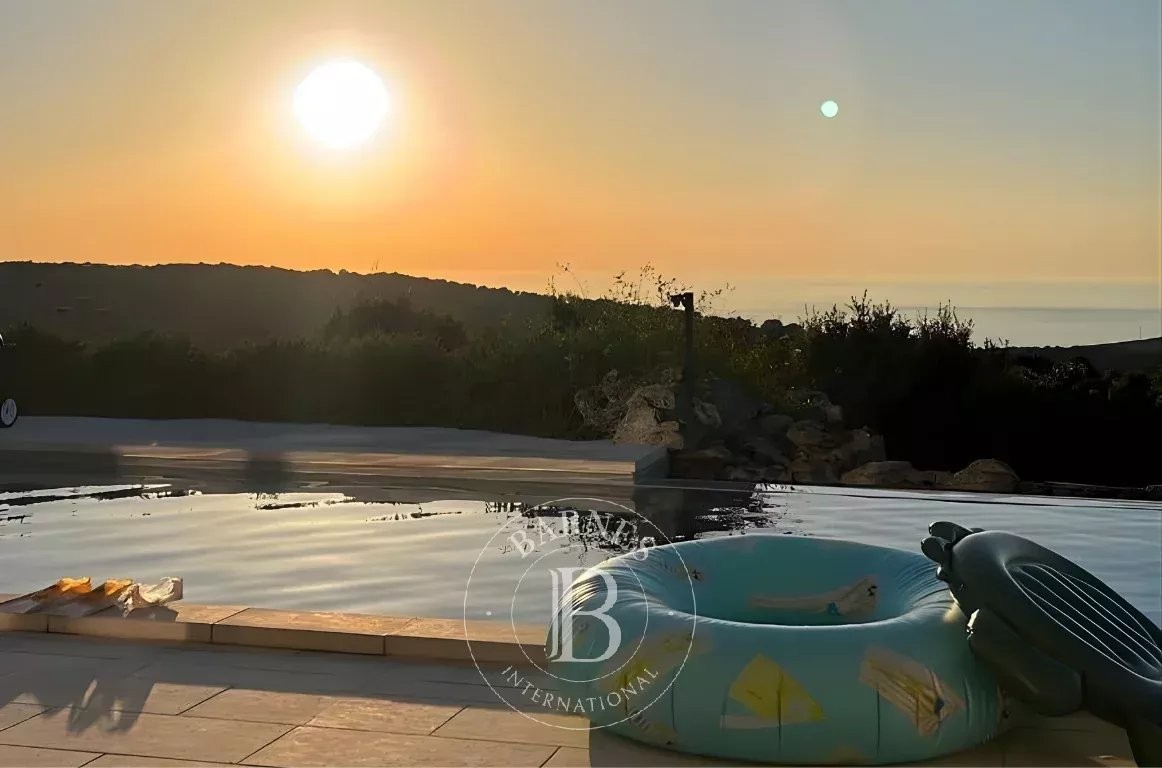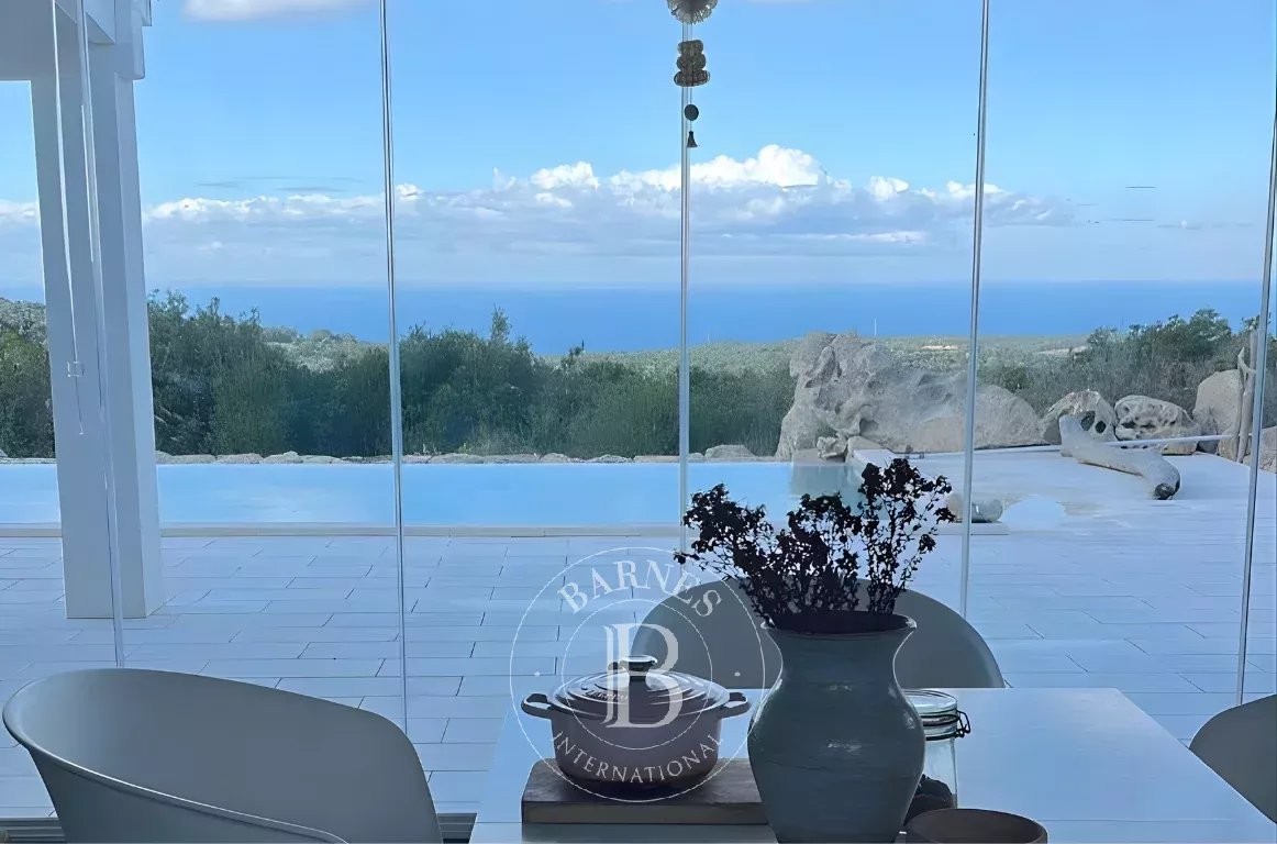 All’esterno, la proprietà è circondata da un giardino privato curato nei minimi dettagli, arricchito da una piscina a sfioro con vista sul mare, ampie terrazze panoramiche e un’accogliente veranda coperta, ideale per pranzi e cene all’aperto. Un garage privato e posti auto scoperti completano la parte esterna.