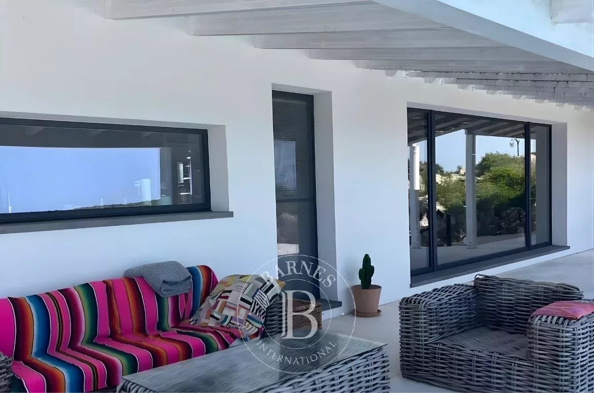 Gli interni, distribuiti su due livelli, sono progettati per offrire comfort e funzionalità. Il piano principale accoglie una luminosa zona living open space con soggiorno e sala da pranzo, una cucina moderna completamente attrezzata e ampie aperture verso la terrazza panoramica. La zona notte comprende due camere da letto eleganti, due bagni e uno studio, perfetto come angolo relax o spazio di lavoro. La suite padronale gode di un’uscita diretta su una terrazza privata con vista mare, un luogo di rara bellezza e tranquillità. Al livello inferiore si trova invece una pratica area di servizio e deposito.